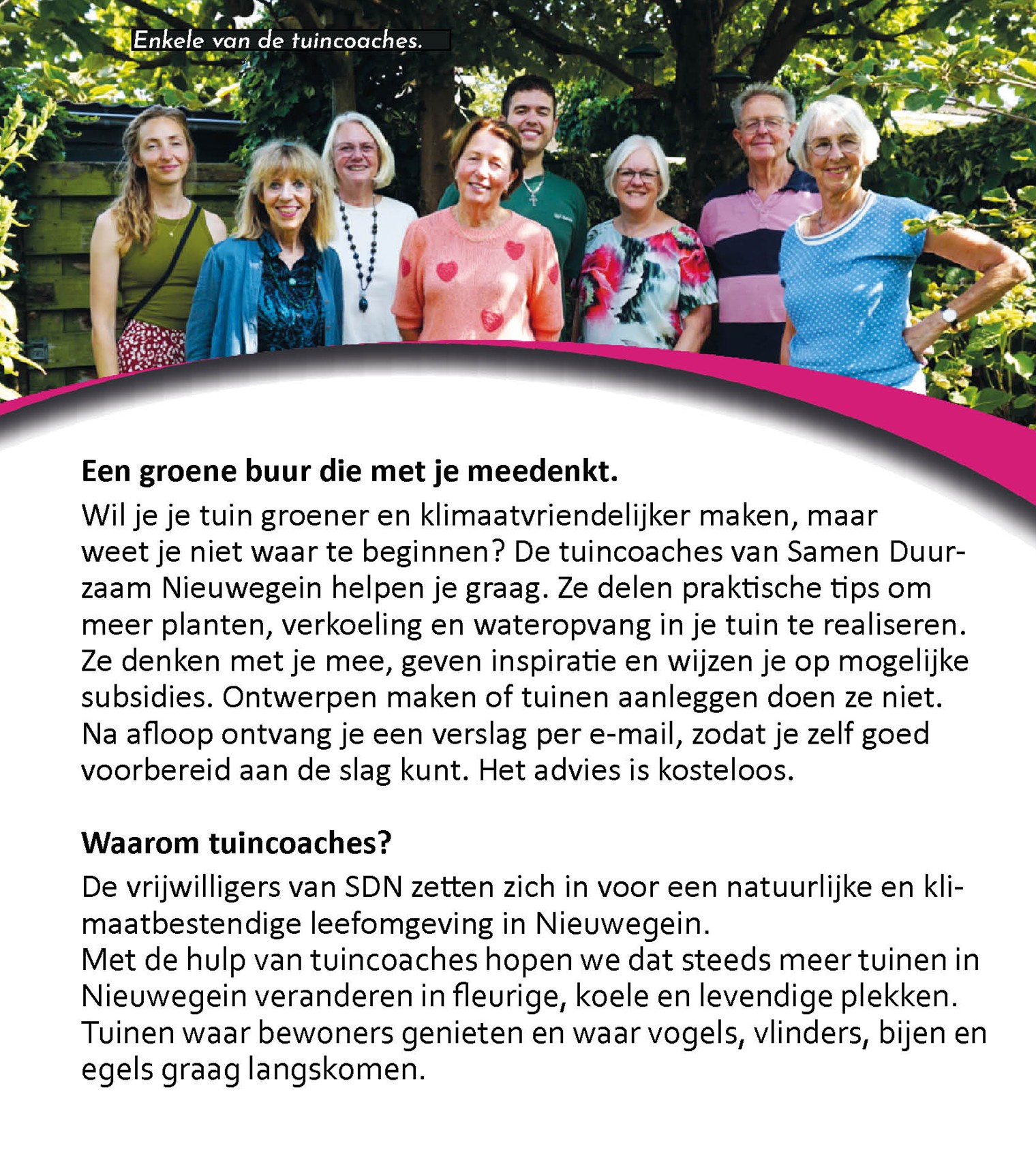 - Tuincoaches zijn vrijwilligers met veel ervaring met tuinieren.
